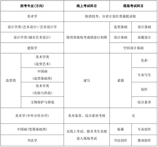 1.造型類專業(yè)《速寫》科目、美術(shù)學(xué)(中外合作辦學(xué))專業(yè)《美術(shù)鑒賞》《綜合素質(zhì)考核》科目采用線上考試進行!端賹憽房颇靠荚嚂r長為2小時。