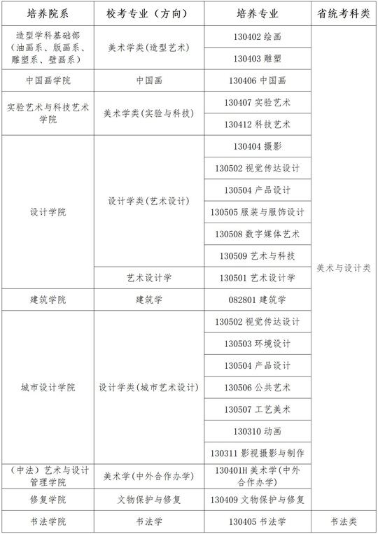 中央美術(shù)學(xué)院2026年本科招生?紝I(yè)(方向)省統(tǒng)考科類對應(yīng)要求