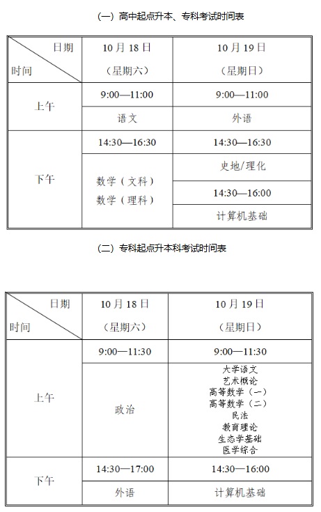 高中起點的語文、數(shù)學(xué)、外語(外語科目語種分英語、日語)、理化、史地,考試時間均為120分鐘;計算機(jī)基礎(chǔ)考試時間為90分鐘。各科目滿分均為150分。