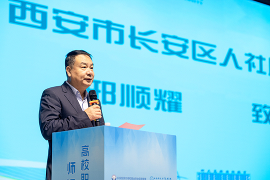 在儀式上,我院副院長(zhǎng)王國(guó)良代表西安科技大學(xué)高新學(xué)院全體師生,對(duì)市、區(qū)人社領(lǐng)導(dǎo)及參訓(xùn)教師表示熱烈歡迎。王院長(zhǎng)介紹了學(xué)院的辦學(xué)特色與“以就業(yè)為導(dǎo)向”的育人理念,強(qiáng)調(diào)此次培訓(xùn)對(duì)于提升師資能力、促進(jìn)就業(yè)工作的重要意義。他表示,學(xué)校將全力做好服務(wù)保障工作,并祝愿各位老師在培訓(xùn)中學(xué)有所獲、學(xué)以致用。