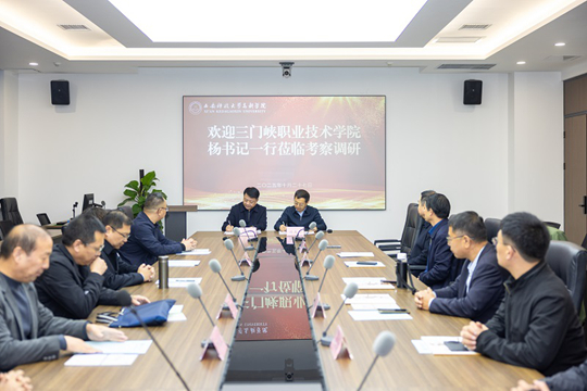 2025年10月27日,三門峽職業(yè)技術學院黨委書記楊彤率隊,副院長彭博、黨委委員兼副院長員瑩、院長助理李啟松等領導一行赴西安科技大學高新學院開展考察調(diào)研活動。西安科技大學高新學院董事長孫龍杰、副院長王福豹、王國良,院長助理胡秋實、辦公室主任王智榮等領導,及陜西航天意德高科技產(chǎn)業(yè)有限公司、西安西科節(jié)能集團有限公司等企業(yè)代表參與此次交流,雙方圍繞教育發(fā)展、校企合作、產(chǎn)教融合等領域深度聯(lián)動,共探發(fā)展新路徑。