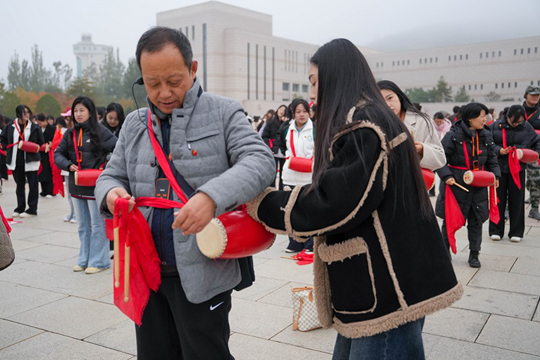 在延安革命紀(jì)念館,安塞腰鼓的激昂節(jié)奏點(diǎn)燃了現(xiàn)場氛圍。入館后,毛澤東轉(zhuǎn)戰(zhàn)陜北的“小白馬”、書寫《沁園春·雪》的小炕桌、鐫刻真理光芒的“實(shí)事求是”石刻三件文物,成為最生動的思政教材,配合館內(nèi)群雕與歷史照片,黨中央在延安的奮斗歷程愈發(fā)清晰可感。