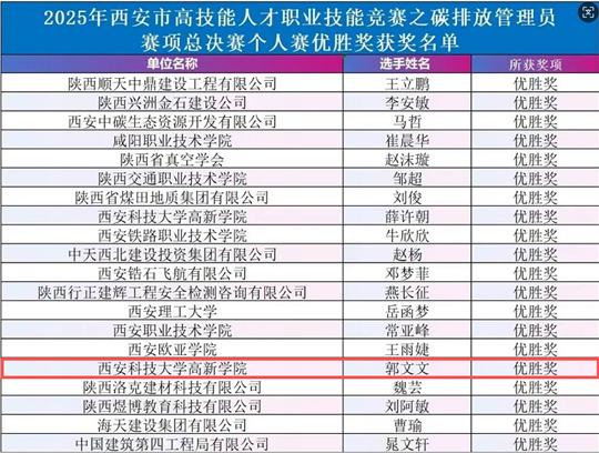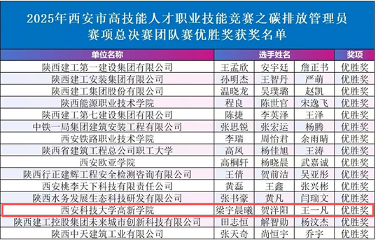 | 喜報!西安科技大學(xué)高新學(xué)院科技與工程學(xué)院城建系在2025年西安市碳排放管理員競賽中斬獲兩項優(yōu)勝獎! |