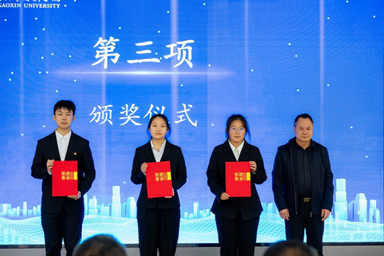 特別是在2025年陜西省賽中,學(xué)校推送的11項(xiàng)作品有10項(xiàng)獲獎(jiǎng),獲獎(jiǎng)率高達(dá)91%,在全省同類型院校中排名第2位,并首次斬獲“優(yōu)秀組織單位”與“進(jìn)步顯著獎(jiǎng)”。更在第十九屆“挑戰(zhàn)杯”國(guó)賽中榮獲主體賽國(guó)家三等獎(jiǎng),位居同類型院校之首,實(shí)現(xiàn)了歷史性突破。這些成績(jī)的取得,源于學(xué)校將“挑戰(zhàn)杯”作為引領(lǐng)青年科技創(chuàng)新的重要抓手。通過(guò)深化“一院一賽”制度、舉辦“追光計(jì)劃”“攀登計(jì)劃”分享會(huì)百余場(chǎng),并依托社會(huì)實(shí)踐與“揭榜掛帥”機(jī)制,有效推動(dòng)了競(jìng)賽成果從“教室”走向“市場(chǎng)”、從“賽場(chǎng)”走向“職場(chǎng)”,形成了“產(chǎn)學(xué)研用”深度融合的良性循環(huán),為新質(zhì)生產(chǎn)力賦能高質(zhì)量發(fā)展奠定了堅(jiān)實(shí)基礎(chǔ)。頒獎(jiǎng)儀式上,校領(lǐng)導(dǎo)為獲獎(jiǎng)團(tuán)隊(duì)、個(gè)人及相關(guān)單位鄭重頒發(fā)榮譽(yù)證書(shū)。燈光下,證書(shū)的金邊與獲獎(jiǎng)?wù)哐壑械墓饷⒔幌噍x映,這不僅是對(duì)過(guò)往努力的肯定,更是對(duì)未來(lái)科創(chuàng)征程的期許。