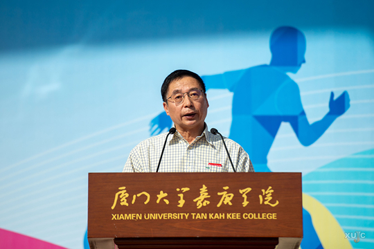 雷銳生引用“體育強(qiáng)則中國強(qiáng),國運(yùn)興則體育興”,強(qiáng)調(diào)體育的重要性。他指出,一直以來,學(xué)校弘揚(yáng)校主陳嘉庚先生“強(qiáng)國強(qiáng)民”的愛國體育思想,以立德樹人為根本,秉持健康第一的教育理念,以增強(qiáng)學(xué)生體質(zhì)為中心,扎實(shí)推進(jìn)體教融合落地,不斷深化體育俱樂部教學(xué)模式的改革與實(shí)踐。在過去的兩年,學(xué)校體育工作緊跟時(shí)代步伐,在體育競(jìng)賽、教學(xué)科研、設(shè)施建設(shè)、校企合作等方面取得了長(zhǎng)足的進(jìn)步。值得一提的是,在2024年、2025年中國大學(xué)生跆拳道錦標(biāo)賽中,跆拳道隊(duì)勇奪甲組團(tuán)體總分全國第一,成功實(shí)現(xiàn)四連冠;在2024年、2025年福建省大學(xué)生游泳錦標(biāo)賽中,游泳隊(duì)強(qiáng)勢(shì)拿下7金6銀5銅;在2024年福建省大學(xué)生網(wǎng)球聯(lián)賽中,網(wǎng)球隊(duì)斬獲甲組混合團(tuán)體冠軍。不僅如此,2025年,校跆拳道隊(duì)、游泳隊(duì)、籃球隊(duì)、田徑隊(duì)的6名隊(duì)員跨專業(yè)成功考上國內(nèi)外知名高校體育專業(yè)研究生。