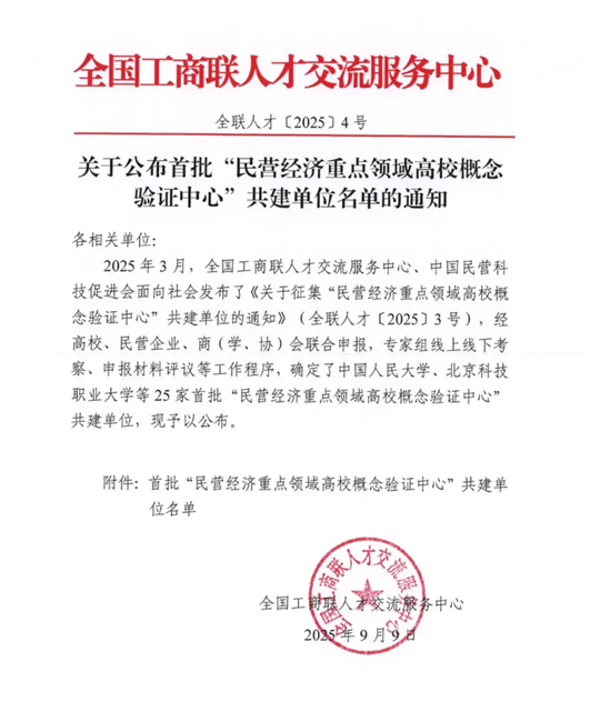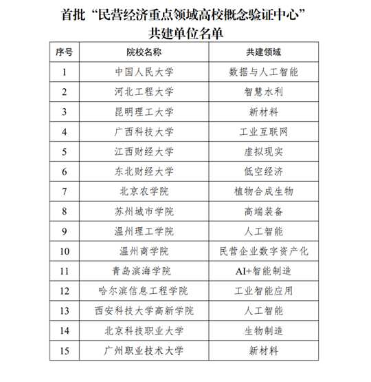 “民營經(jīng)濟重點領域高校概念驗證中心”共建計劃,是全國工商聯(lián)人才交流服務中心與中國民營科技促進會為貫徹落實《中共中央 國務院關于促進民營經(jīng)濟發(fā)展壯大的意見》而開展的重要項目,旨在通過整合高校、民營企業(yè)、商(學、協(xié))會等多方資源,加速科技成果產(chǎn)業(yè)化進程,解決科技成果轉化“最后一公里”難題。該計劃重點聚焦人工智能、低空經(jīng)濟、生物醫(yī)藥、新能源汽車、新一代信息技術、集成電路、光電子信息、智能制造、新材料、雙碳、數(shù)字經(jīng)濟、工業(yè)機器人、工業(yè)互聯(lián)網(wǎng)、虛擬現(xiàn)實、數(shù)字住建、智慧交通等多個前沿領域,力爭在3年內(nèi)共建150家左右特色鮮明的高校概念驗證中心。