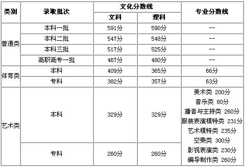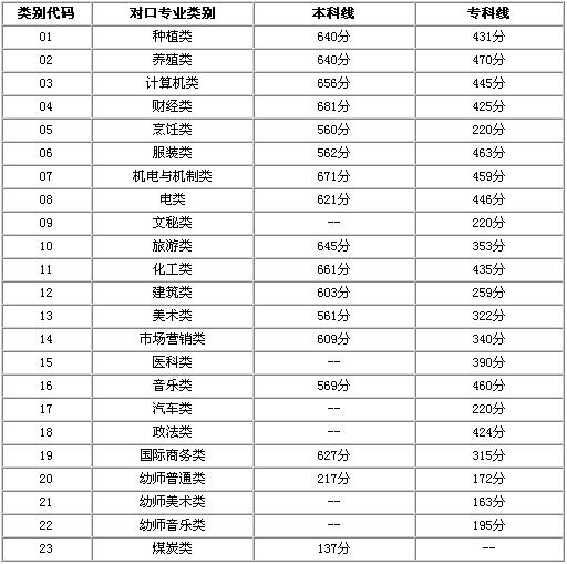 2006年河南省普通高校對口招生錄取控制分?jǐn)?shù)線