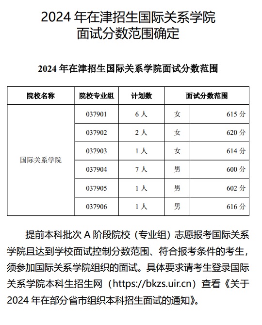 2024年在津招生國際關(guān)系學(xué)院面試分?jǐn)?shù)范圍確定
