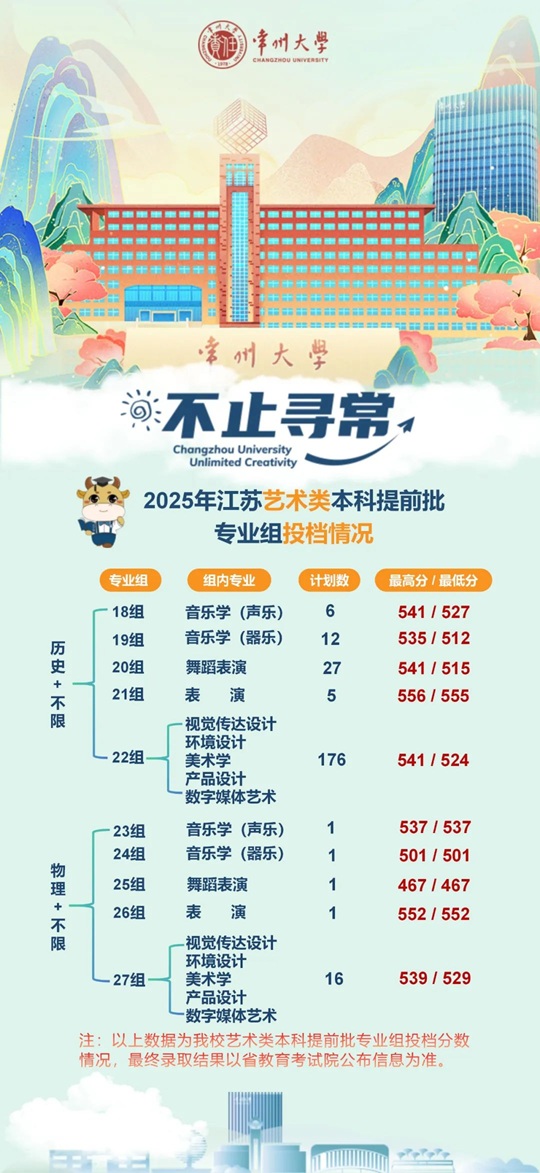 | 常州大學(xué)2025年江蘇省藝術(shù)類本科提前批專業(yè)組投檔情況 |