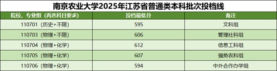 | 南京農(nóng)業(yè)大學(xué)2025年江蘇省普通類(lèi)本科批次投檔線(xiàn) |