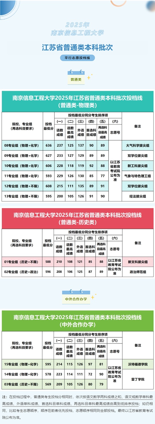 | 南京信息工程大學(xué)2025年江蘇省普通類本科批次投檔線 |