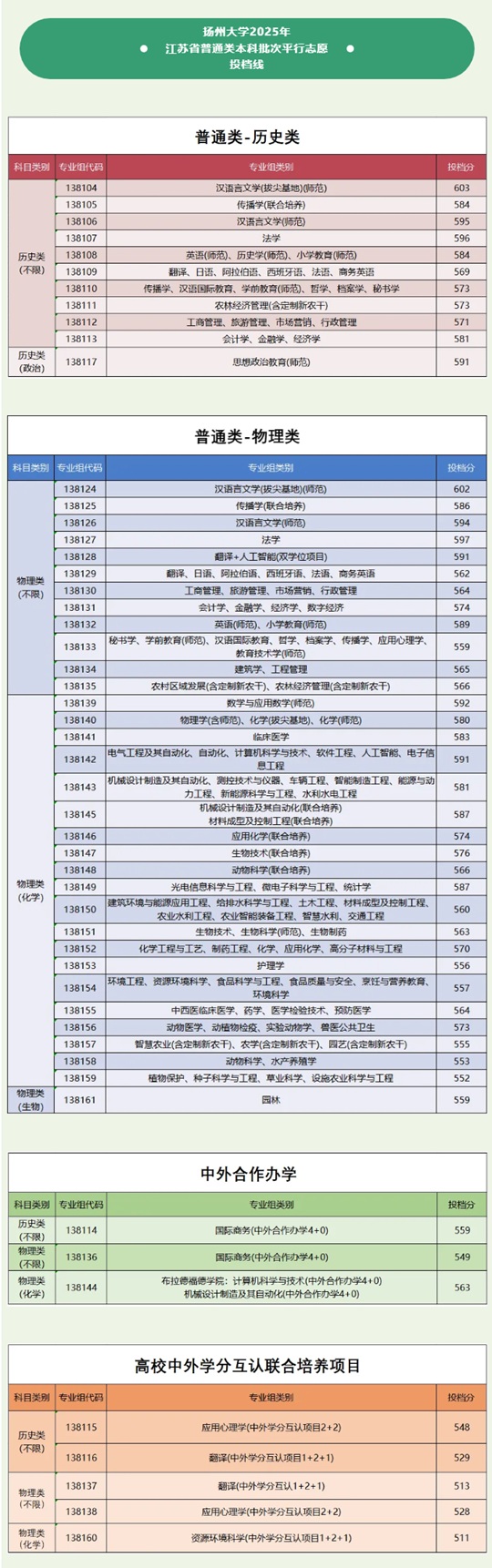 | 揚州大學(xué)2025年江蘇省普通類本科批次平行志愿投檔線 |