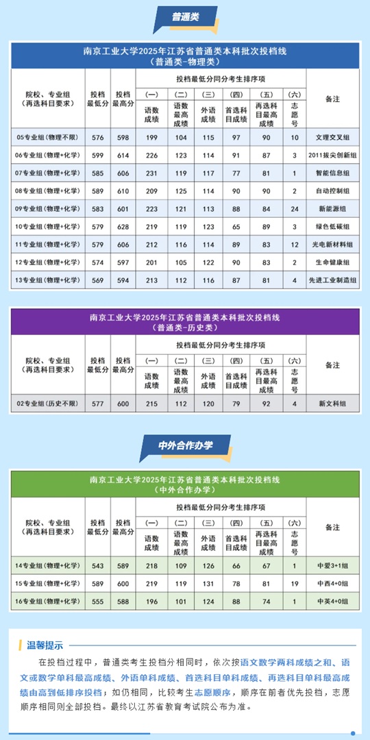 南京工業(yè)大學(xué)2025年江蘇省普通類本科批次投檔線