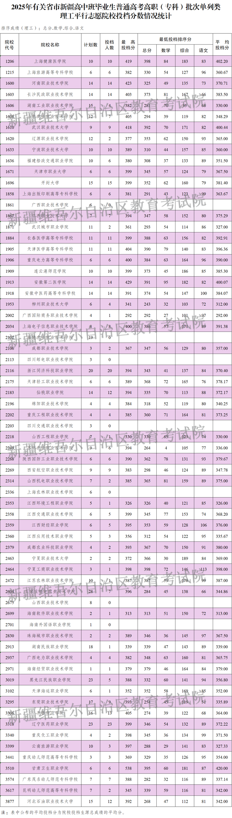 | 新疆維吾爾自治區(qū)2025年普通高校招收有關(guān)省市新疆高中班畢業(yè)生高職(?疲┡瓮稒n情況 |