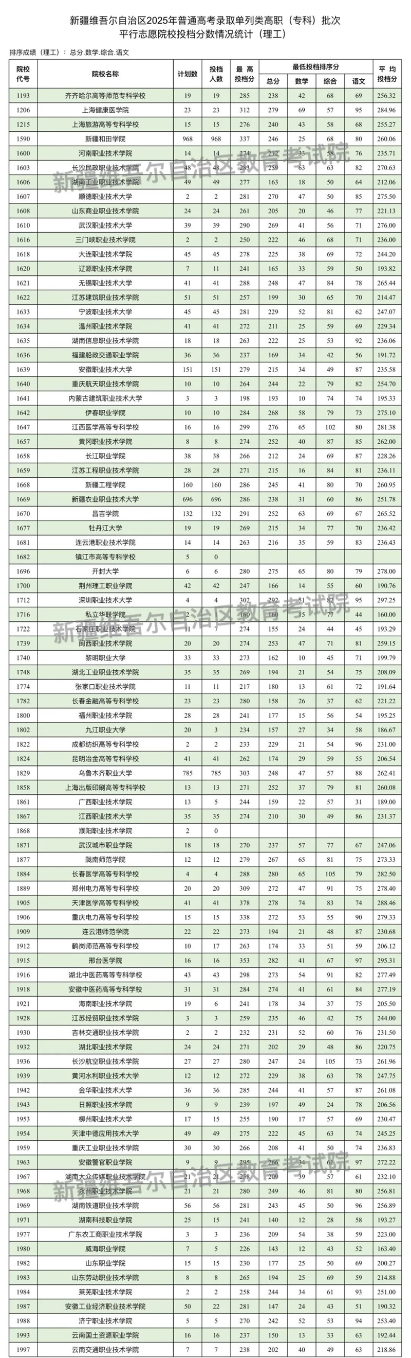 | 新疆維吾爾自治區(qū)2025年普通高校招生單列類高職(?疲┡瓮稒n情況 |