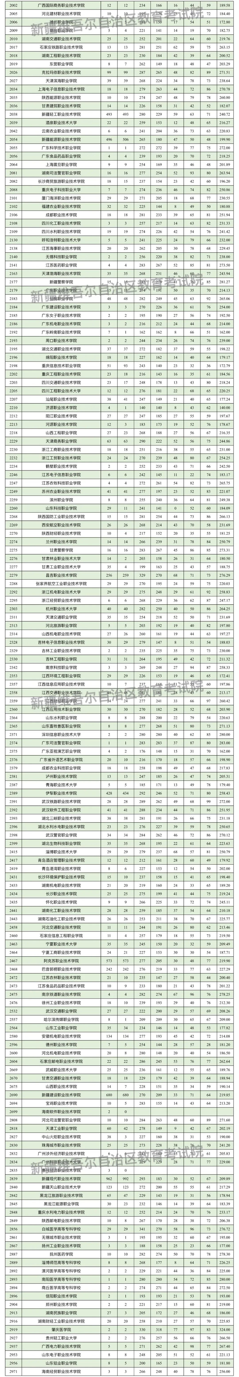 按照錄取工作安排,自治區(qū)普通高校招生單列類高職(?疲┡瓮稒n錄取工作于8月20日正式開始。新疆教育考試院根據(jù)投檔原則向單列類高職(?疲┡卧谖覅^(qū)招生的院校進(jìn)行了投檔,現(xiàn)將相關(guān)院校投檔情況公布如下:
