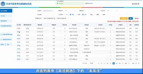 記者注意到,系統(tǒng)中對于篩選出的有意向的院校,考生可以進(jìn)行“關(guān)注”,就像大家平時網(wǎng)上購物使用的“購物車”一樣,從幾千個院校專業(yè)組當(dāng)中,把關(guān)注的幾百個院校專業(yè)組,放到志愿填報的“購物車”里,然后再將“關(guān)注列表”中的這些院校專業(yè)組縮小范圍,最終形成“志愿草表”。