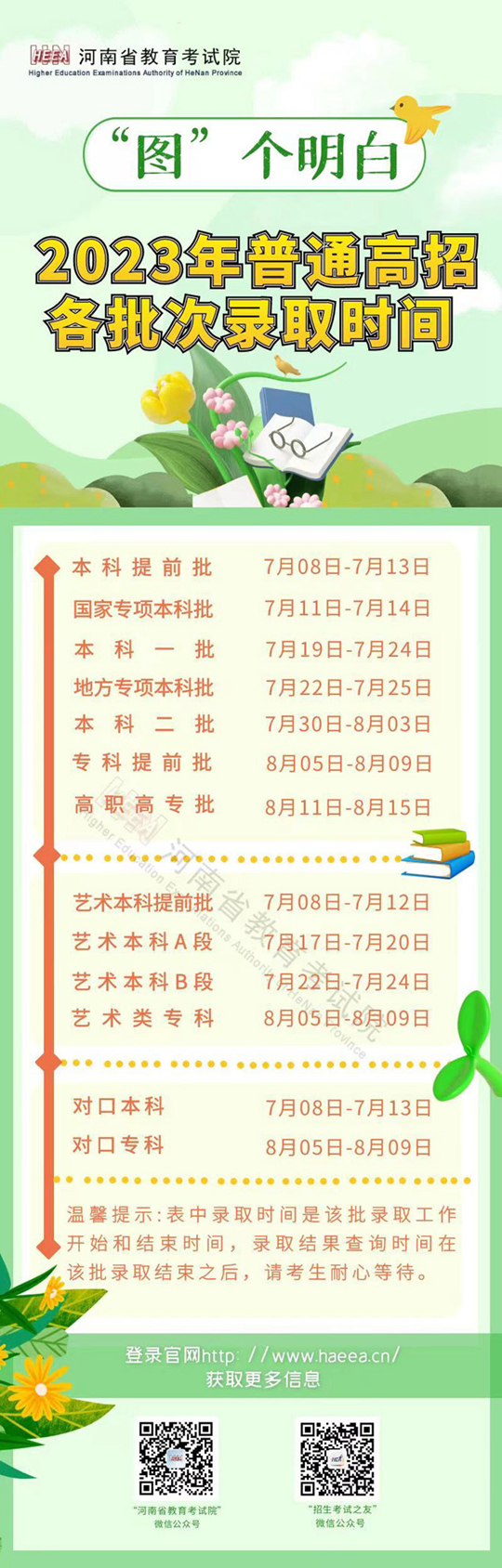 河南省2023年普通高招各批次錄取時(shí)間
