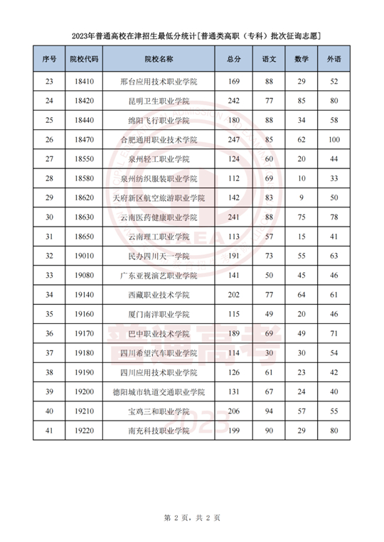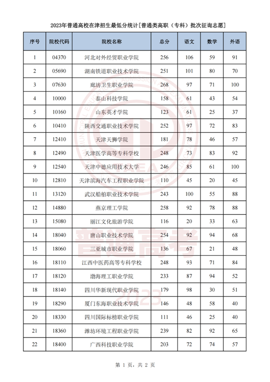 2023年普通高校在津招生最低分統(tǒng)計(jì)[普通類高職(?疲┡握髟冎驹竇