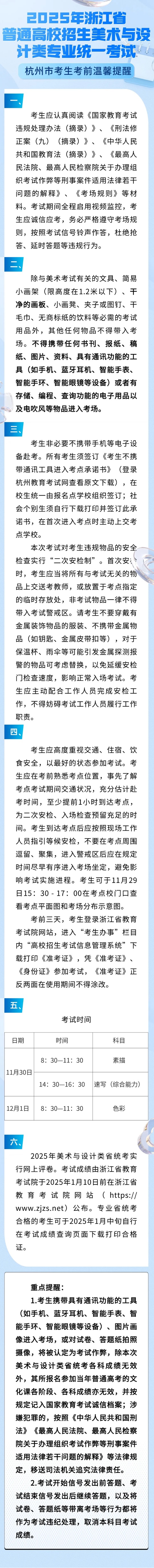 | 2025年浙江省普通高校招生美術(shù)與設(shè)計(jì)類專業(yè)統(tǒng)一考試杭州市考生考前溫馨提醒 |