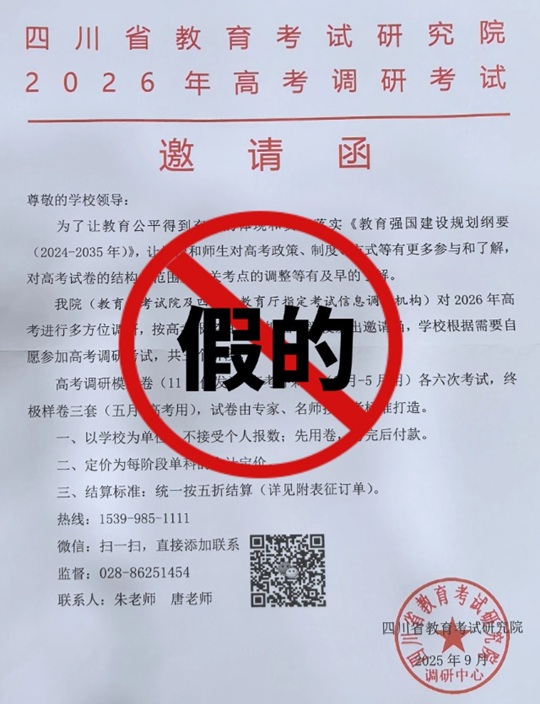 | 四川省教育考試院關(guān)于2026年高考調(diào)研虛假信息的嚴(yán)正聲明 |