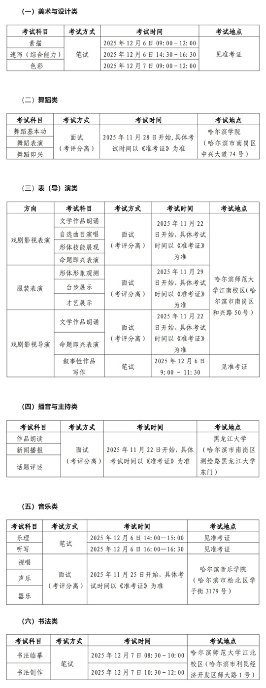 | 關(guān)于黑龍江省2026年普通高校招生藝術(shù)類專業(yè)考試時間地點(diǎn)等有關(guān)事宜的通知 |