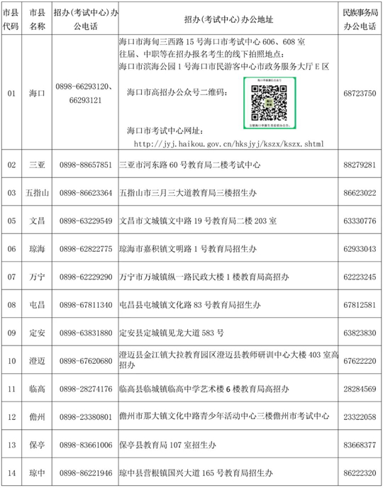2026年海南省普通高考報(bào)名期間各市縣咨詢(xún)電話(huà)和地址