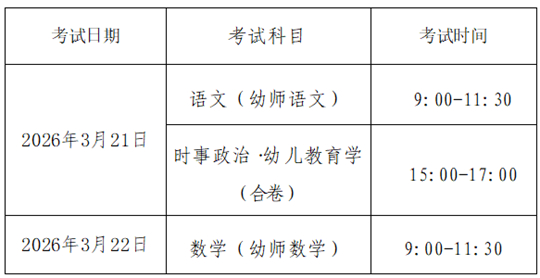 (2)教育類(lèi)專(zhuān)業(yè)文化課考試科目及時(shí)間為: