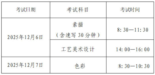 專(zhuān)業(yè)考試與普通高招美術(shù)與設(shè)計(jì)類(lèi)專(zhuān)業(yè)省統(tǒng)考統(tǒng)一安排,考試時(shí)間安排如下: