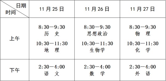 2025年下半年河北省普通高中學(xué)業(yè)水平合格性考試筆試科目考試將于11月25日-27日進行,各科具體時間安排如下: