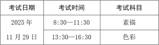 考生須帶身份證和準考證參加所有項目考試。美術(shù)考試安排在每天上午7:30—9:00,遲到考生7:45后不得進場考試,本項目作棄考處理;其他項目每天上午9:30開始,當(dāng)天所有項目必須在18:00前進入候考區(qū)域,逾期作棄考處理。