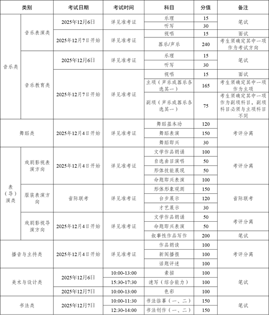 自治區(qū)2026年普通高等學(xué)校招生藝術(shù)類專業(yè)統(tǒng)考科目及時(shí)間表