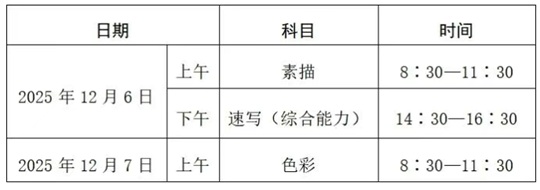 浙江省2026年高考美術(shù)與設(shè)計類省統(tǒng)考將于2025年12月6日—7日舉行。考生須帶齊必要證件,做好赴考準備。一起來看考前提醒。