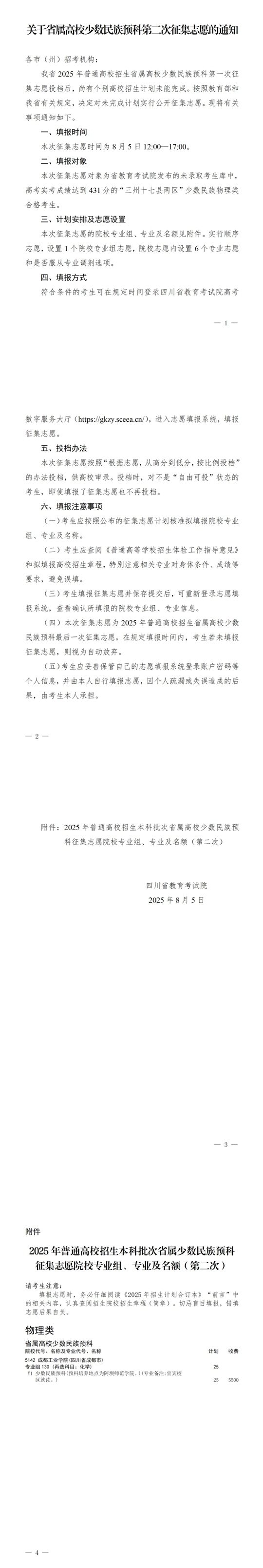 四川:關(guān)于省屬高校少數(shù)民族預科第二次征集志愿的通知