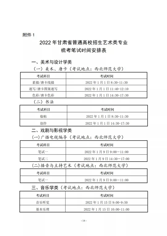 1. 2022年甘肅省普通高校招生藝術類專業(yè)統(tǒng)考筆試時間安排表