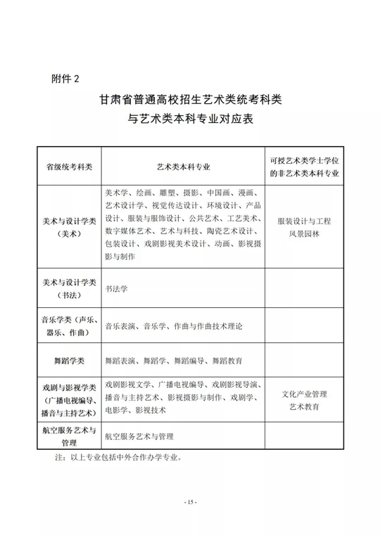 2.甘肅省普通高校招生藝術類統(tǒng)考科類與藝術類本科專業(yè)對應表
