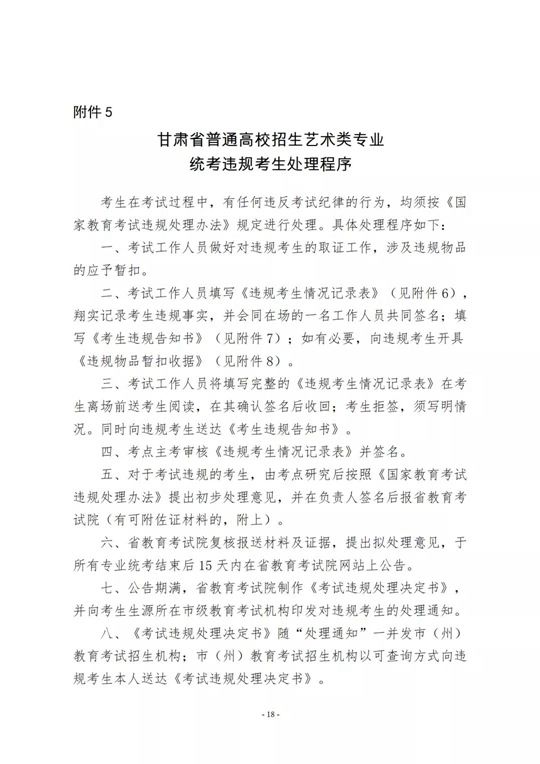 5.甘肅省普通高校招生藝術類專業(yè)統(tǒng)考違規(guī)考生處理程序