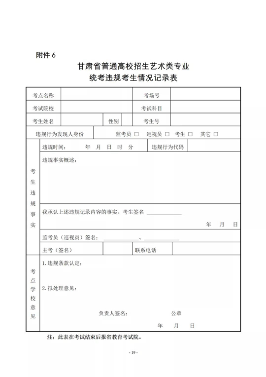 6.甘肅省普通高校招生藝術類專業(yè)統(tǒng)考違規(guī)考生情況記錄表