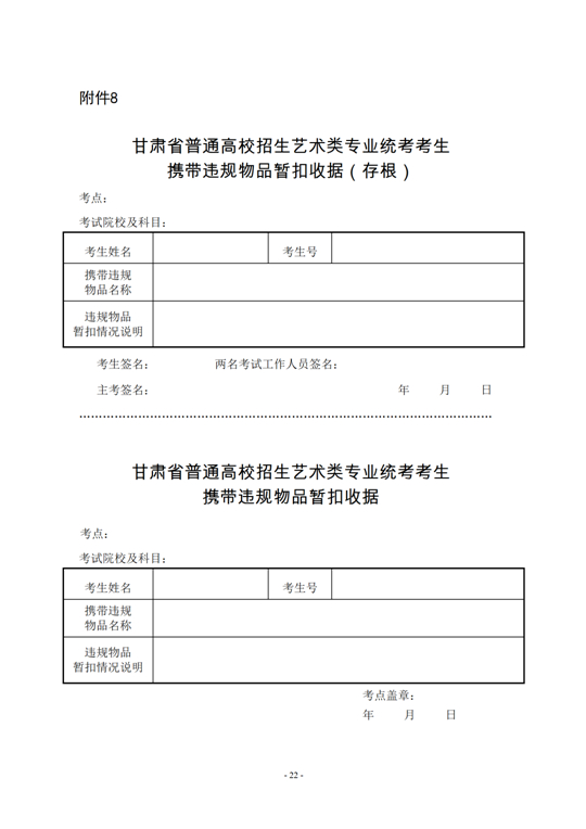 8.甘肅省普通高校招生藝術類專業(yè)統(tǒng)考考生攜帶違規(guī)物品暫扣收據(jù)