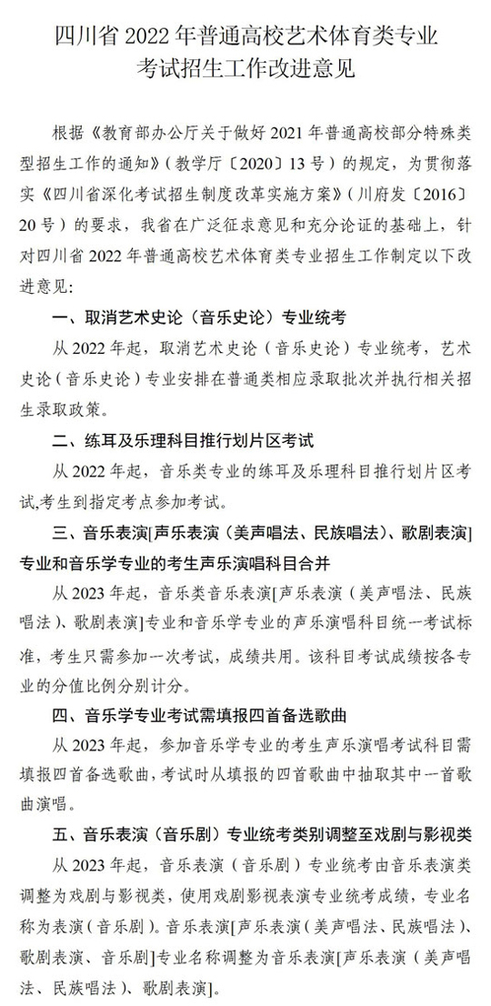 四川省2022年普通高校藝術(shù)體育類專業(yè)考試招生工作改進(jìn)意見