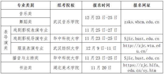 。ㄋ模﹫(bào)考音樂(lè)類、舞蹈類、表(導(dǎo))演類、播音與主持類和書(shū)法類的考生,其專業(yè)統(tǒng)考報(bào)名在相關(guān)組考院校完成。考生在規(guī)定的時(shí)間內(nèi)憑普通高考報(bào)名號(hào)和身份證號(hào)登錄相關(guān)組考院校網(wǎng)站上的報(bào)名系統(tǒng),按要求填報(bào)相關(guān)信息并進(jìn)行網(wǎng)上繳費(fèi),報(bào)名繳費(fèi)成功后在規(guī)定時(shí)間內(nèi)憑高考報(bào)名號(hào)及身份證號(hào)登錄相關(guān)組考院校網(wǎng)站下載打印準(zhǔn)考證。具體安排如下: