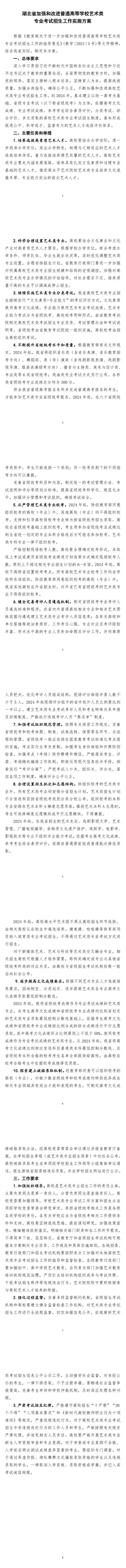 湖北省加強和改進普通高等學校藝術(shù)類專業(yè)考試招生工作實施方案