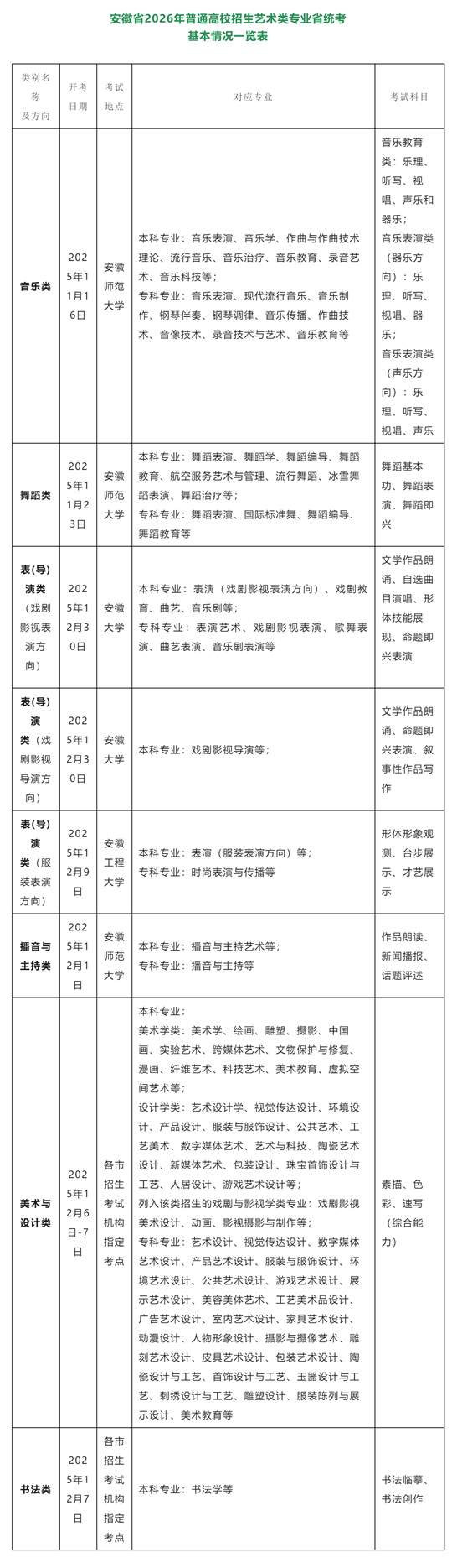 | 安徽省2026年普通高校招生藝術(shù)專業(yè)考試簡章 |