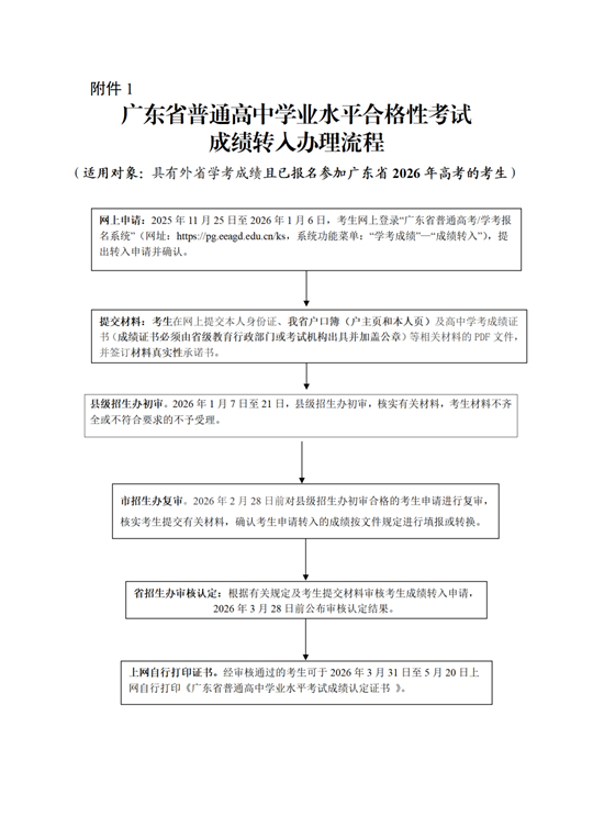 | 廣東:關(guān)于做好2026年普通高中學(xué)業(yè)水平合格性考試考生成績(jī)轉(zhuǎn)移工作的通知 |