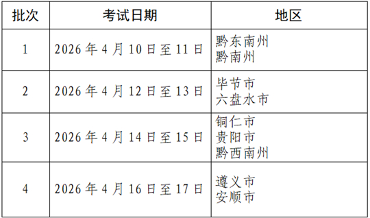 2026年4月10日至17日在貴州師范大學(xué)東校區(qū)(大學(xué)城)組織考試,具體分組如下: