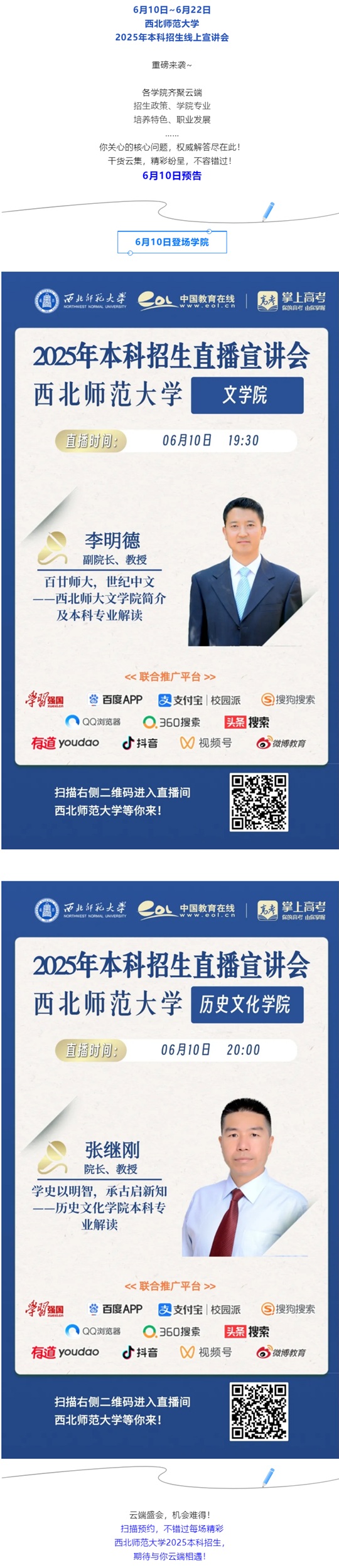 直播預(yù)告︱西北師范大學(xué)2025年本科招生線上宣講會(huì)云端相約!