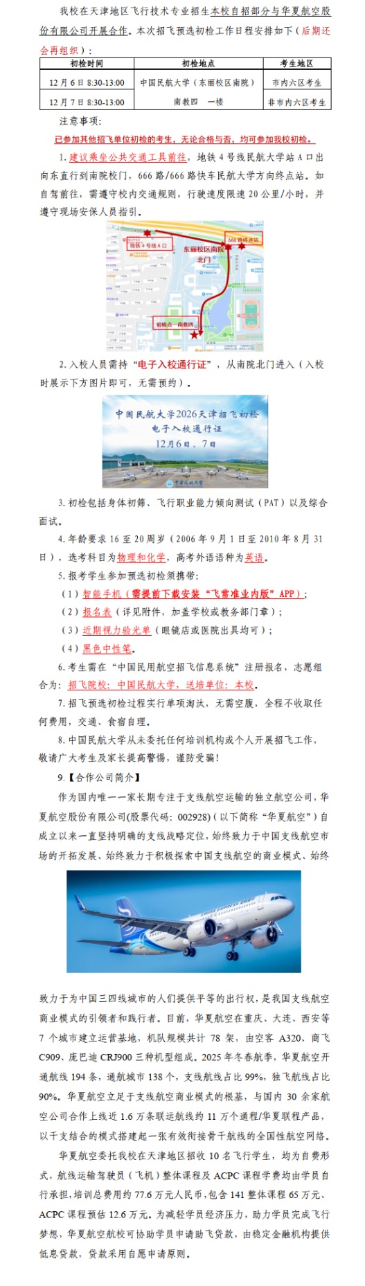 | 中國民航大學(xué):天津地區(qū)2026年招飛預(yù)選初檢安排(本校自招部分)-招飛信息網(wǎng) |