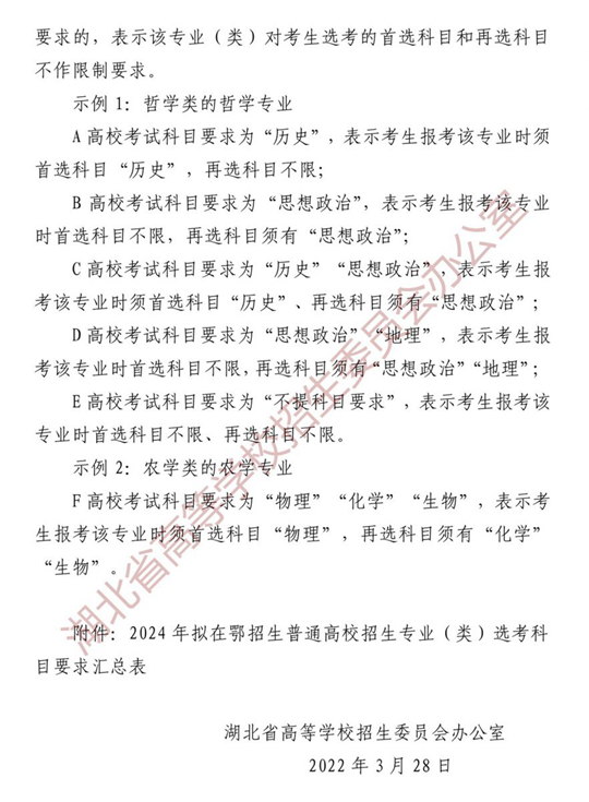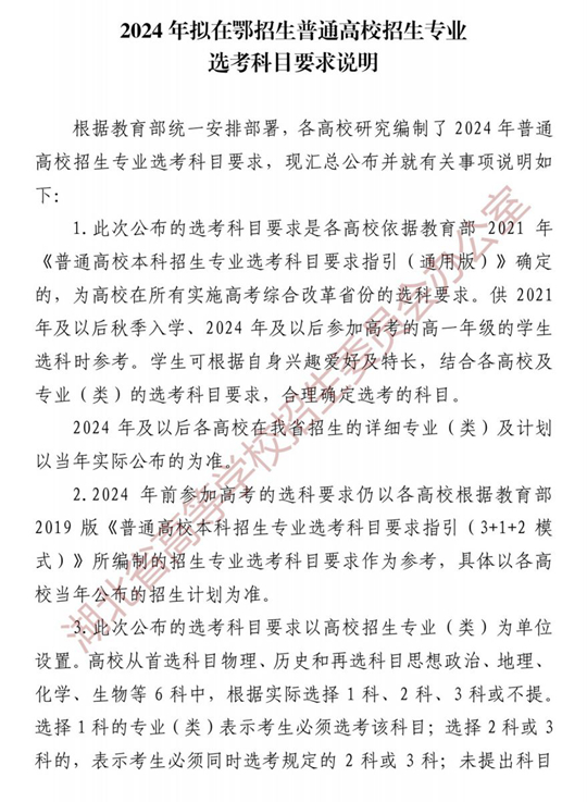 2024年擬在鄂招生普通高校招生專業(yè)選考科目要求說明