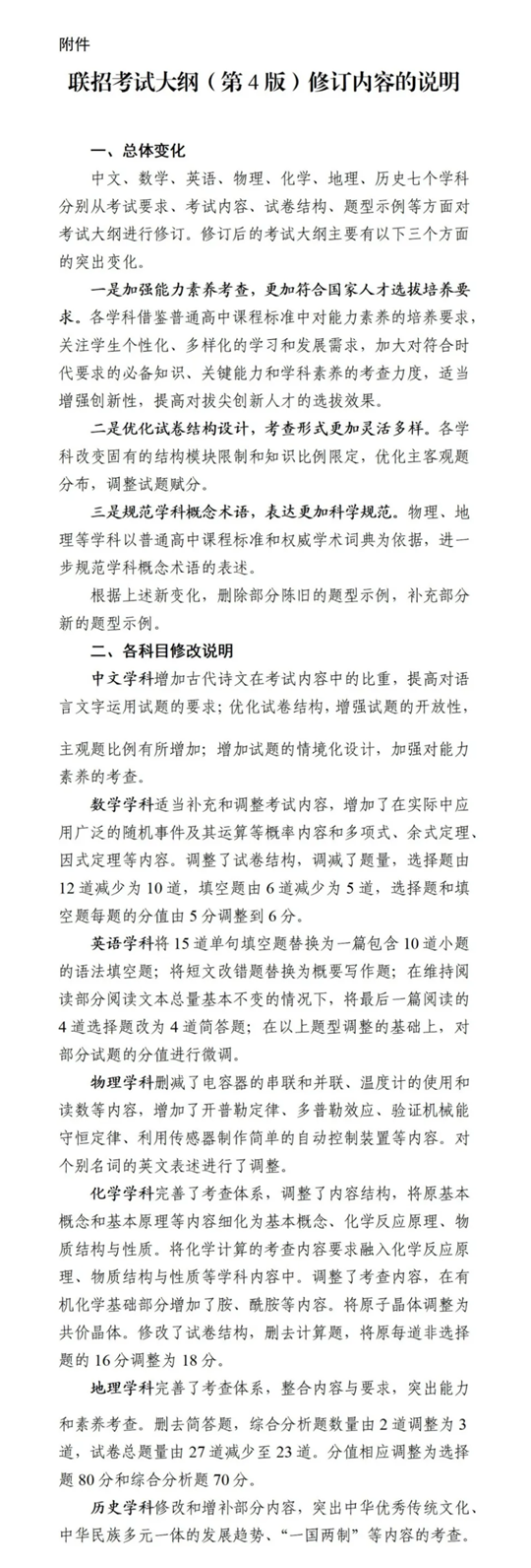 附件:聯(lián)招考試大綱(第4版)修訂內(nèi)容的說明