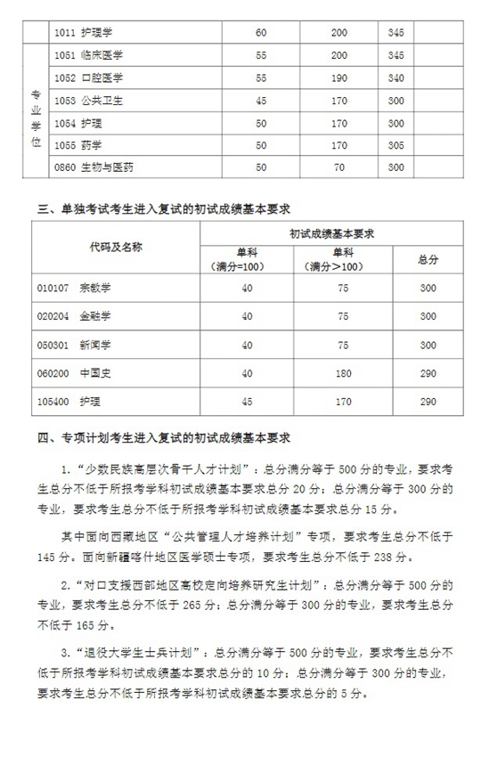 復旦大學2020年碩士研究生招生考試考生進入復試的初試成績基本要求